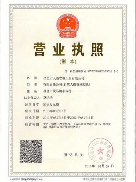 昌邑市天地農(nóng)機工貿(mào)有限公司